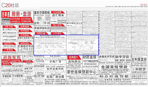 重慶綠色科技開發(fā)有限公司在《重慶商報》刊登的廣告《重慶綠色科技開發(fā)有限公司向社會公開出讓兩項專利及尋求合作伙伴》