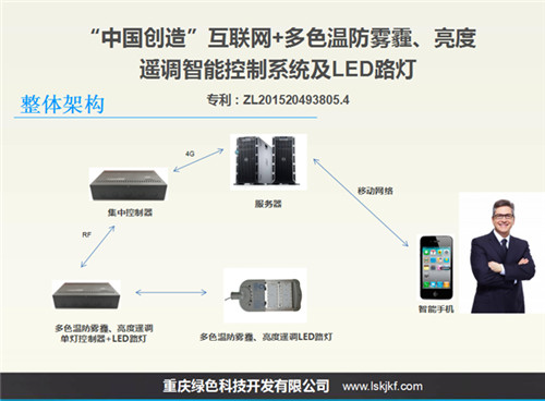 多色溫防霧霾、亮度遙調(diào)新一代LED路燈應(yīng)用智能制造技術(shù)主要包括 “智能集中控制器”、“智能終端多色溫防霧霾、亮度可調(diào)控制器”、“多色溫防霧霾、亮度可調(diào)LED照明路燈”等硬件和“智能軟件編程”、“自動感應(yīng)PM2.5傳感技術(shù)”、“溫度傳感技術(shù)”等新一代應(yīng)用智能制造技術(shù),同時兼容其它路燈遠(yuǎn)程智能控制系統(tǒng)功能。專利技術(shù)《互聯(lián)網(wǎng)+多色溫LED路燈、隧道燈六遙控制系統(tǒng)(ZL201520493805.4)》經(jīng)科技查新已獲得《科技查新報告》(報告編號:J201508016831),證明了是“中國創(chuàng)造”LED路燈應(yīng)用智能制造獨一無二的先進技術(shù);該技術(shù)已列入《2015年度重慶市中小企業(yè)科技成果轉(zhuǎn)化項目》(渝中小企〔2015〕188號),并申請了LED智能控制技術(shù)重慶市工程研究中心【渝發(fā)改技〔2015〕1865號】。